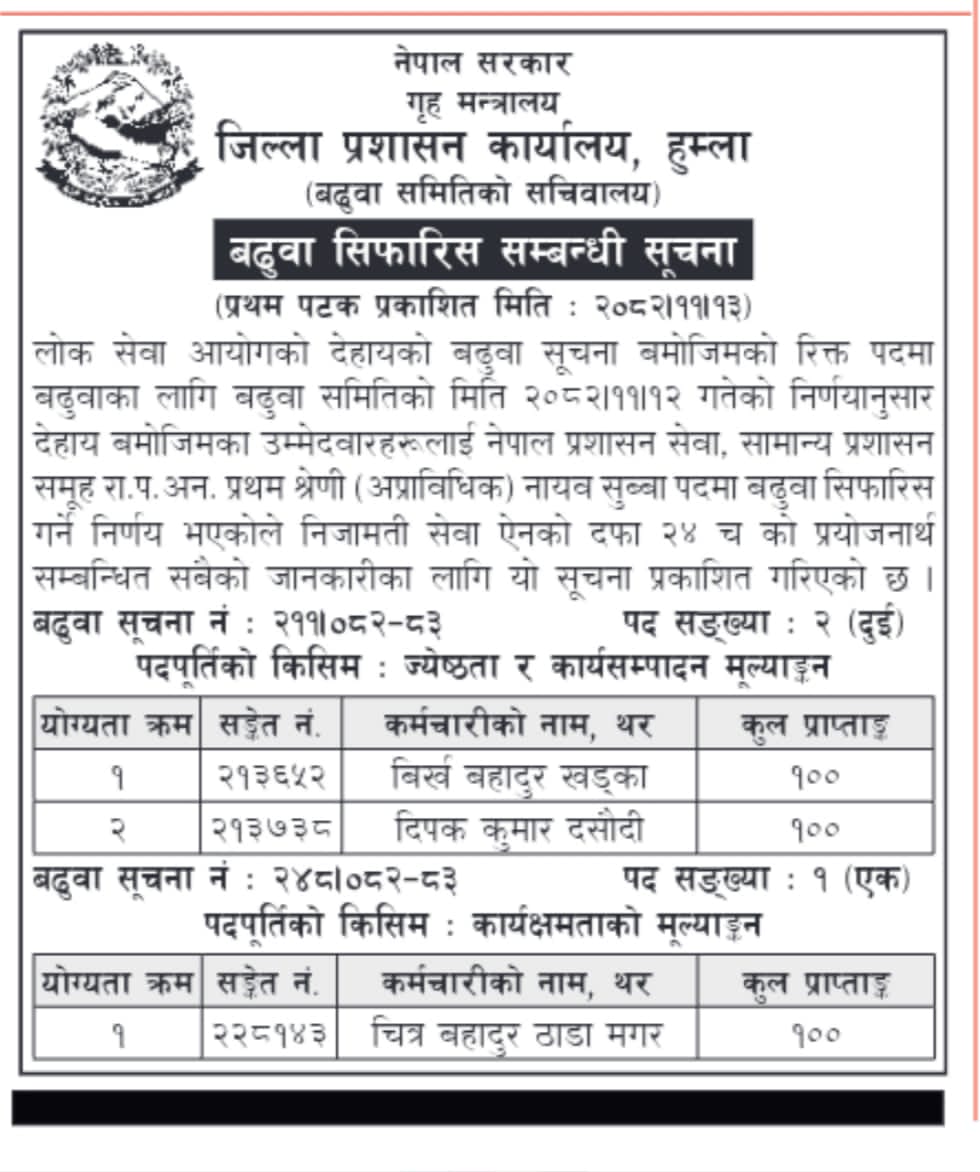 बढुवा सिफारिस सम्बन्धी सूचना।
