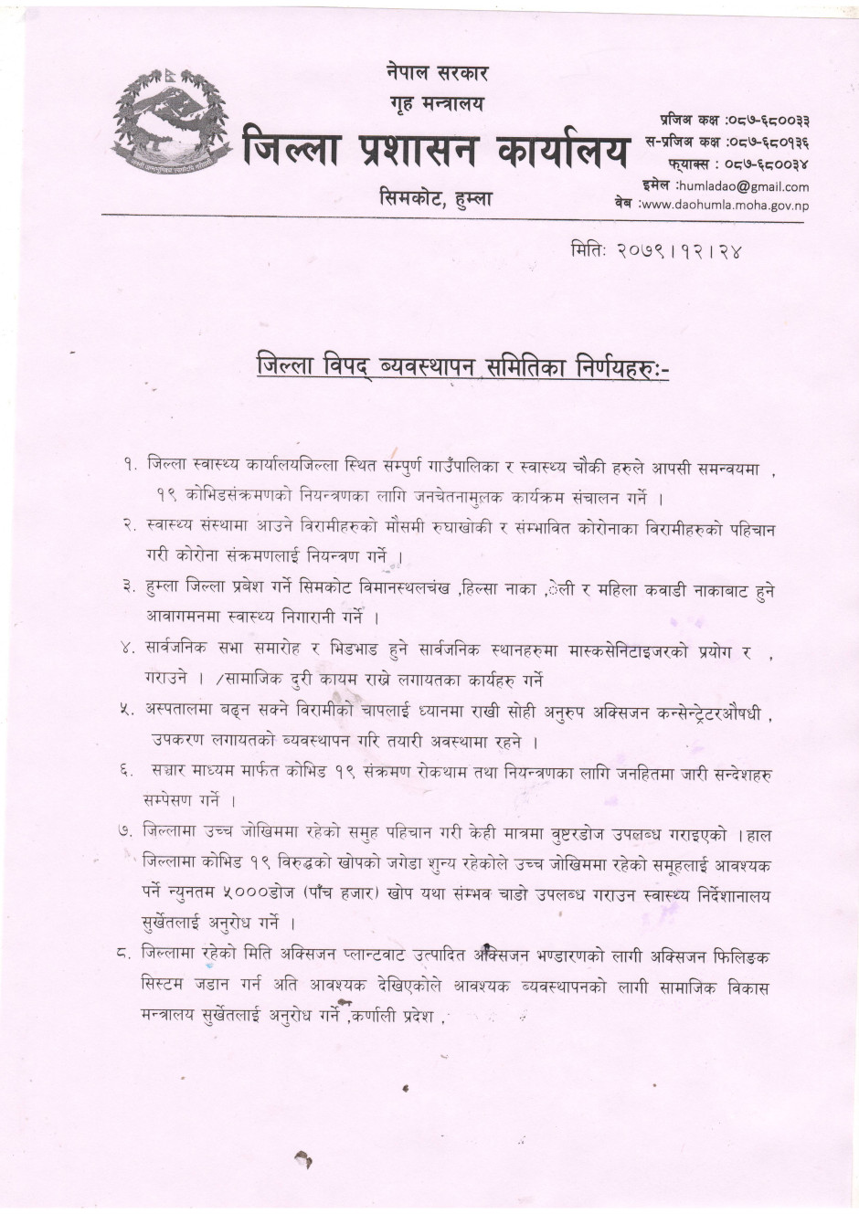 © सर्वाधिकार सुरक्षित जिल्ला प्रशासन कार्यालय, हुम्ला