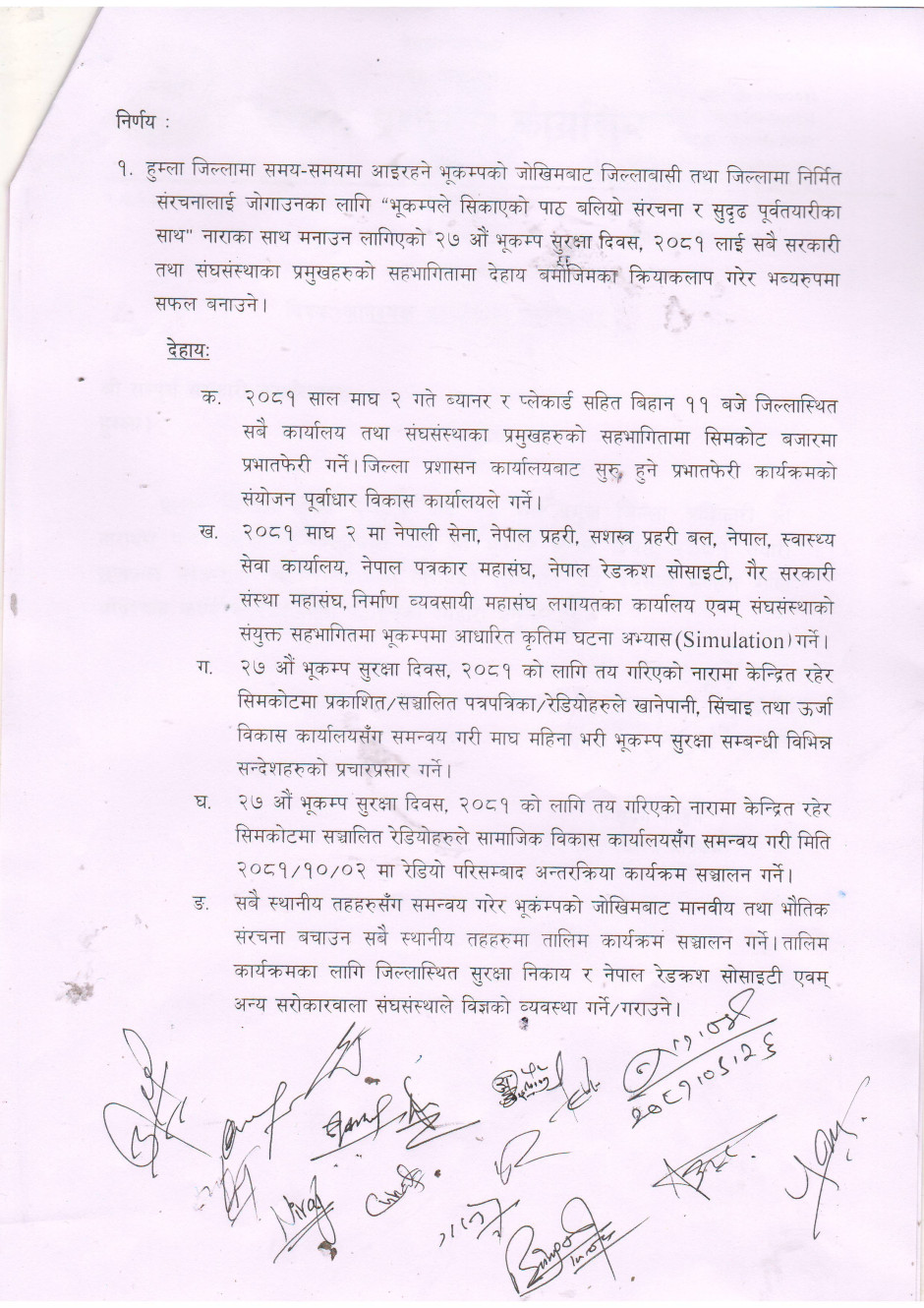 २७औं भूकम्प सुरक्षा दिवस, २०८१ मनाउने सम्बन्धमा।