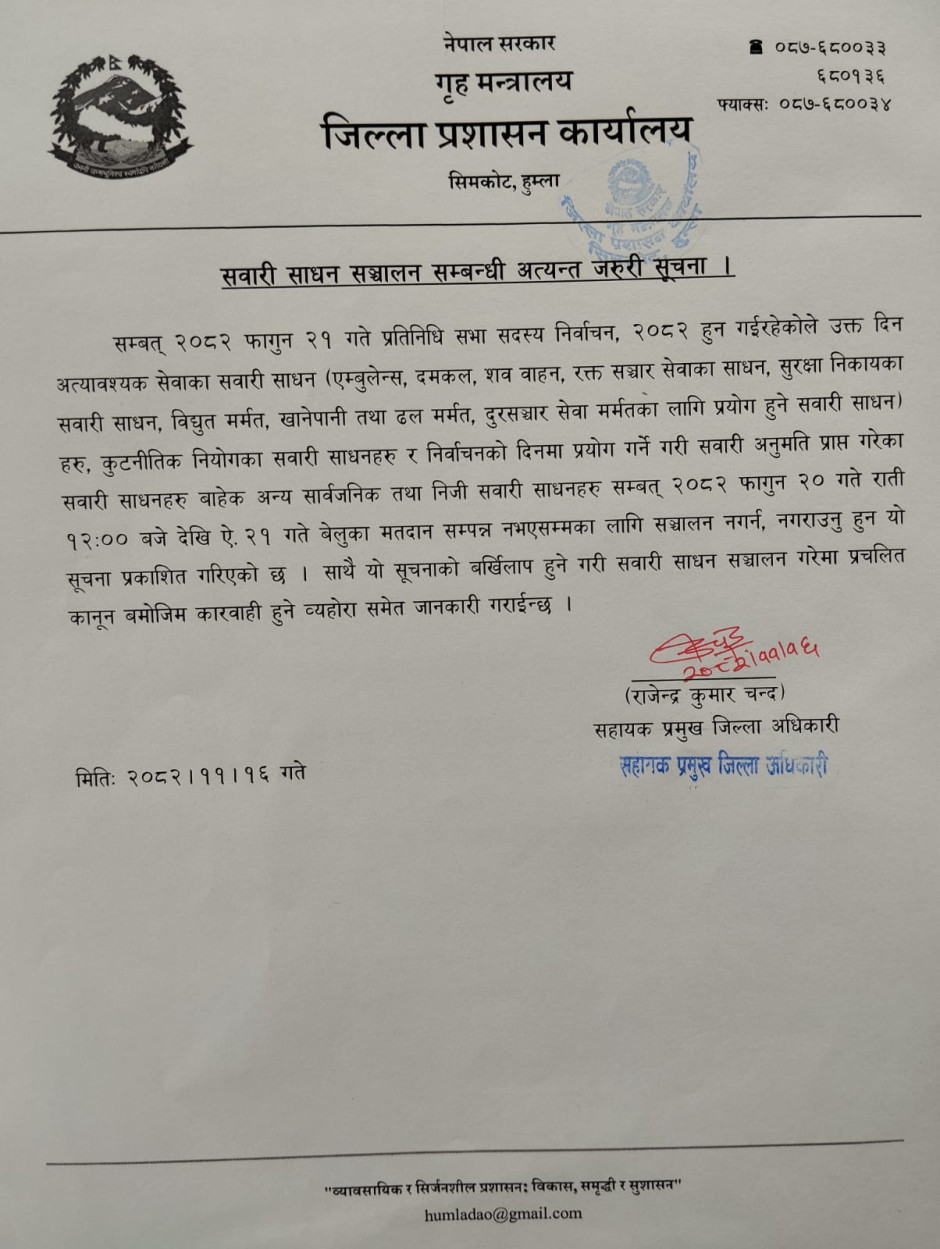 © सर्वाधिकार सुरक्षित जिल्ला प्रशासन कार्यालय, हुम्ला